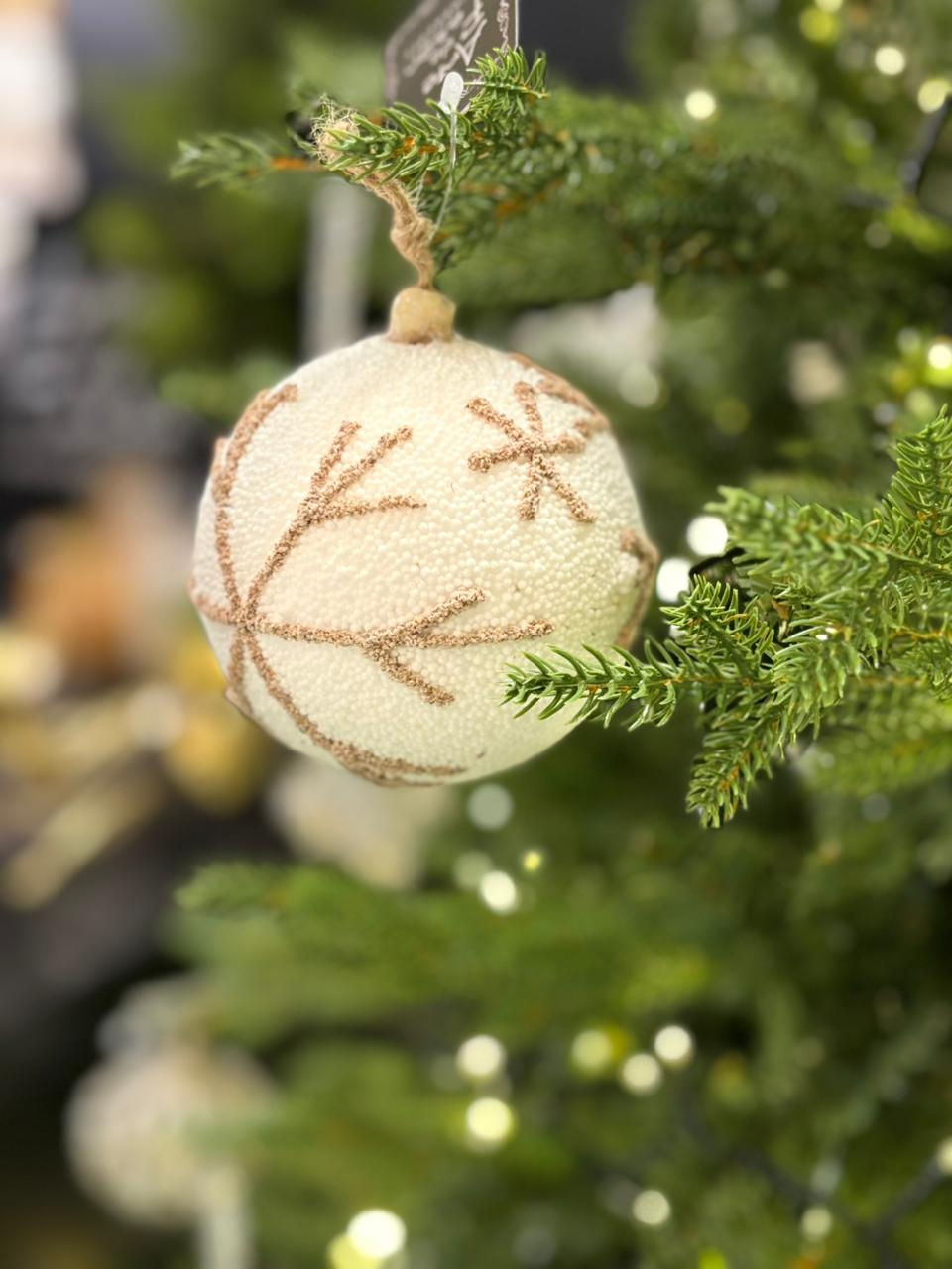 BOLA 10cm - 1UN C/ FLOCO DE NEVE (BRANCO/MARROM) - 1UN