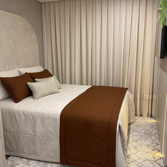 • Conjunto completo: combine colcha, peseira, almofadas e travesseirões de forma harmônica.